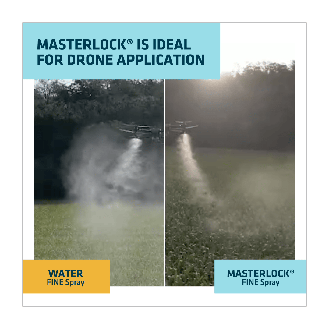 With an aerial application especially, when coverage is already limited by the amount of water being used, a product like MasterLock adjuvant can help keep that small, valuable solution volume from drifting off course to help ensure more product makes it to the target.
